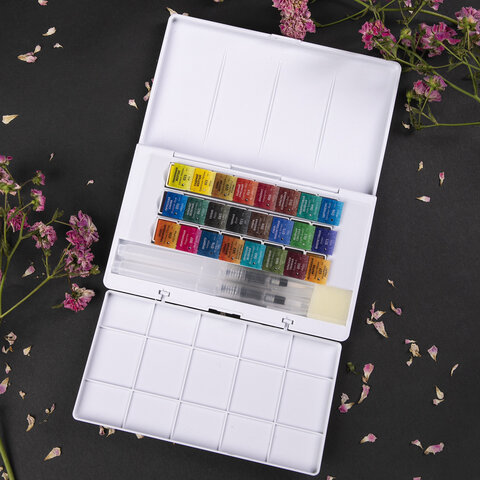 Акварель художественная кюветы НАБОР 24 цвета по 3,5 г, пластиковый кейс, BRAUBERG ART CLASSIC, 191770