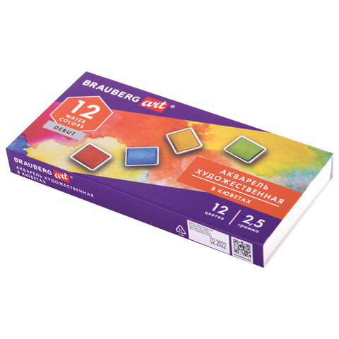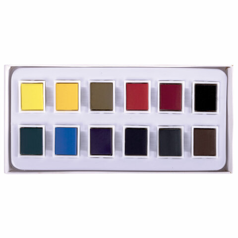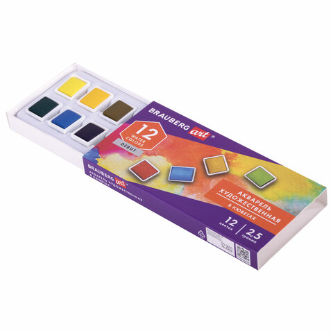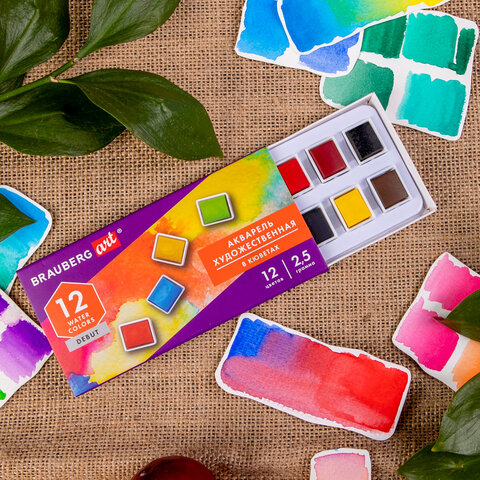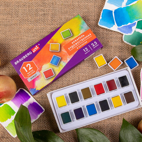 Акварель художественная в кюветах НАБОР 12 цветов по 2,5 г, BRAUBERG ART DEBUT, 191776