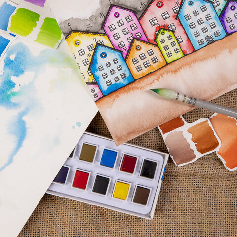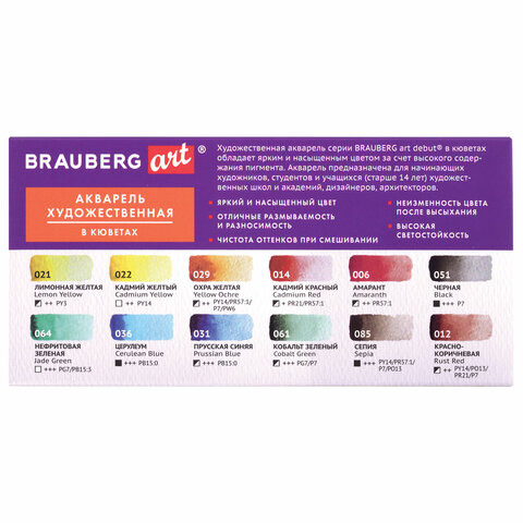 Художественная акварель профессионального качества в кюветах BRAUBERG ART DEBUT предназначена для живописи.