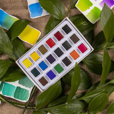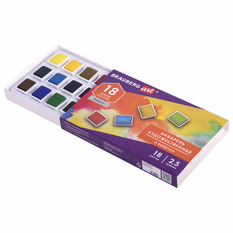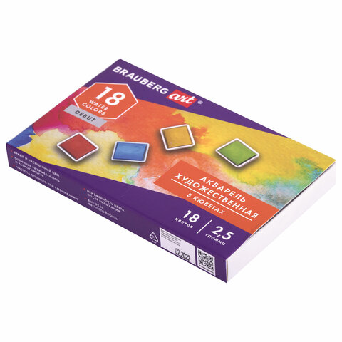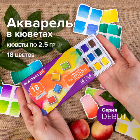 Акварель художественная в кюветах НАБОР 18 цветов по 2,5 г, BRAUBERG ART DEBUT, 191777