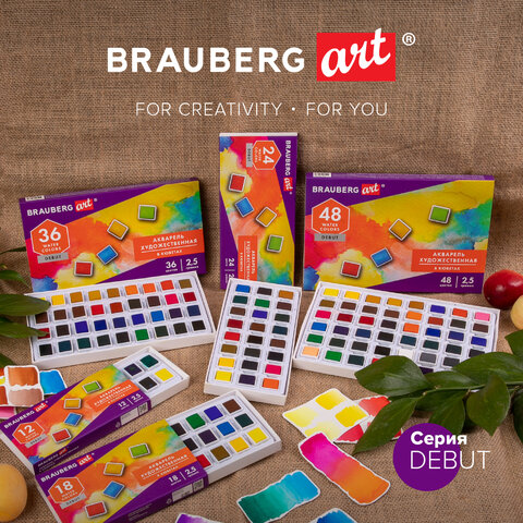 Художественная акварель профессионального качества в кюветах BRAUBERG ART DEBUT предназначена для живописи.