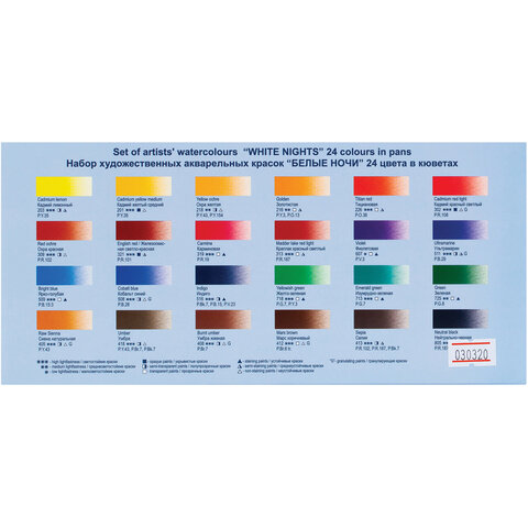 Краски акварельные художественные "Белые Ночи", 24 цвета, кювета 2,5 мл, пластиковая коробка, Невская Палитра, 1942090