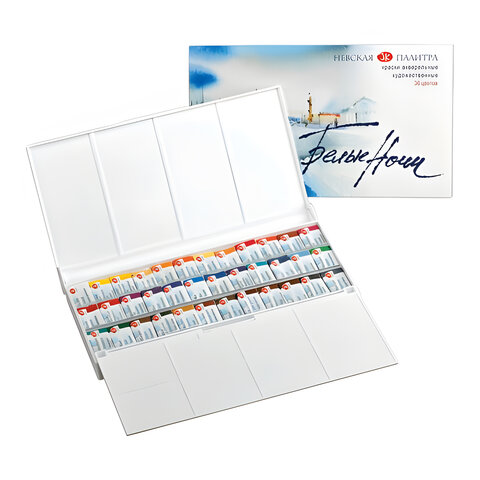 Краски акварельные художественные "Белые ночи", 36 цветов, кювета 2,5 мл, палитра, пластиковая коробка, Невская Палитра, 1942258