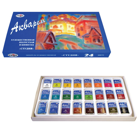 Краски акварельные художественные ГАММА "Студия", 24 цвета, кювета 2,5 мл, картонная коробка, 215001