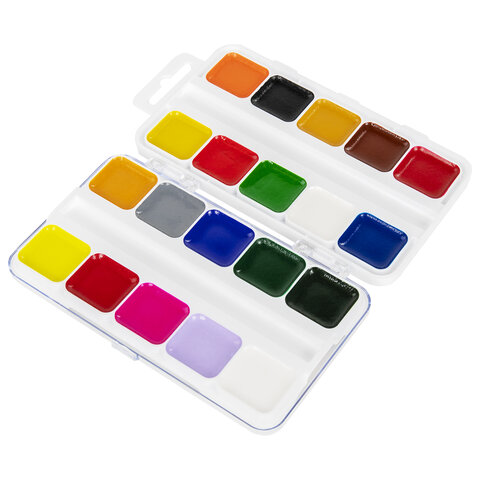 Краски акварельные BRAUBERG KIDS, медовые, 20 цветов, квадратные кюветы, пластиковый пенал, 192283