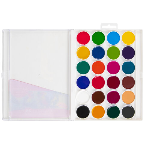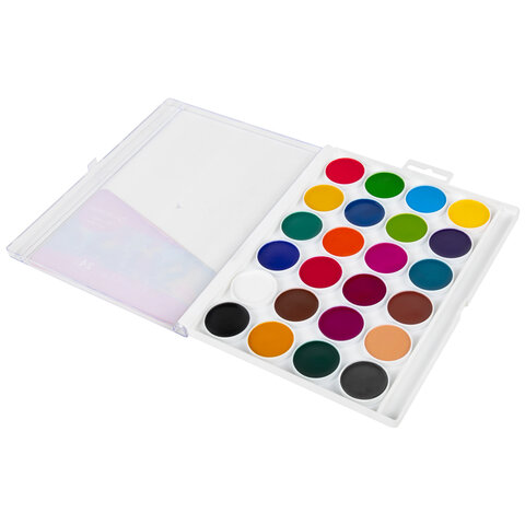 Краски акварельные BRAUBERG "МАГИЯ ЦВЕТА NEW", медовые, 24 цвета, круглые кюветы, пластиковый пенал, 192365