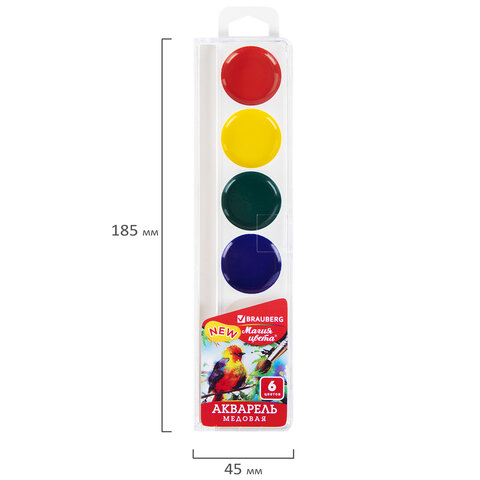 Краски акварельные BRAUBERG "МАГИЯ ЦВЕТА NEW", медовые, 6 цветов, круглые кюветы, пластик, 192285