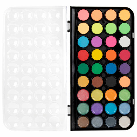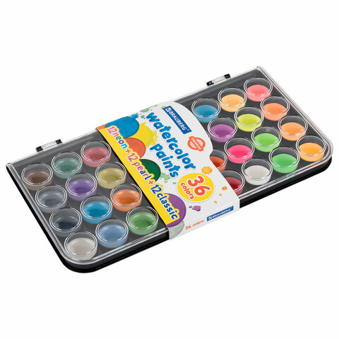 Краски акварельные BRAUBERG "PREMIUM" 36 цветов (12 базовых + 12 неоновых + 12 металлик) пенал, 191807