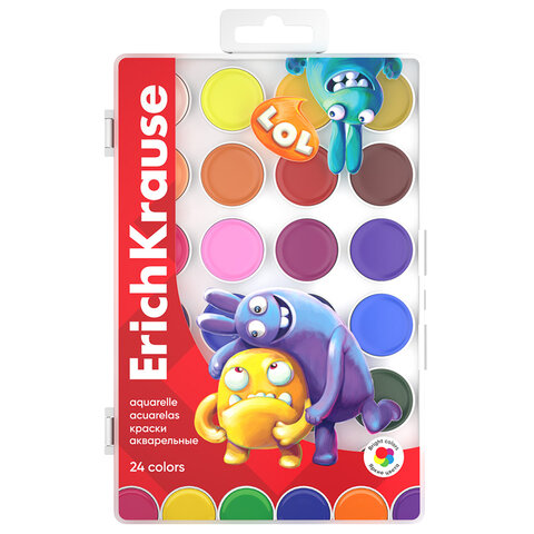 Краски акварельные ERICH KRAUSE "Jolly Friends", 24 цвета, пластиковый пенал, европодвес, 61368