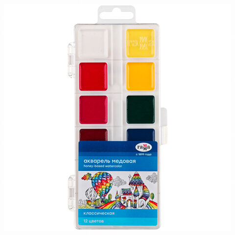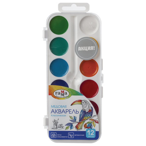 Краски акварельные ГАММА "Классическая", 12 цветов, медовая, пластиковый корпус, европодвес, 1009194