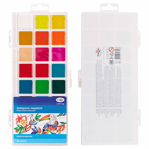 Краски акварельные ГАММА "Классическая", 24 цвета, медовые, пластиковый корпус, европодвес, 1009198