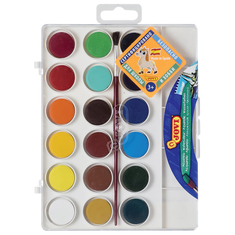 Краски акварельные JOVI (Испания), 18 цветов, с кистью, пластиковая коробка, европодвес, 800/18