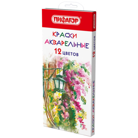 Краски акварельные ПИФАГОР 12 цветов, медовые, круглые кюветы, 192549