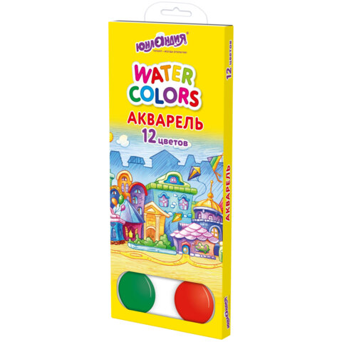 Краски акварельные ЮНЛАНДИЯ "ДОМИКИ", 12 цветов, медовые, круглые кюветы, 192550