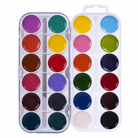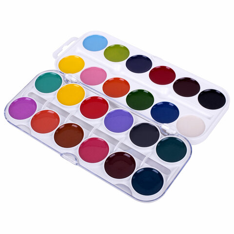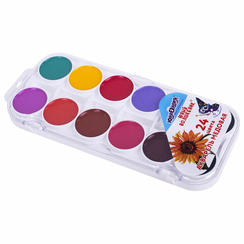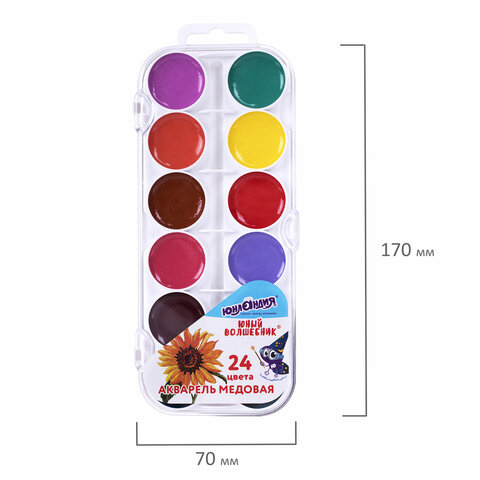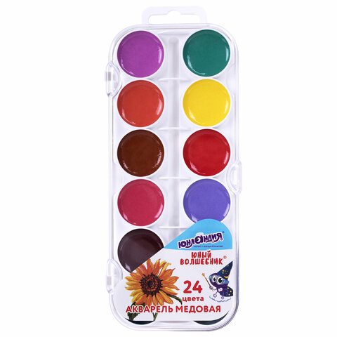 Краски акварельные ЮНЛАНДИЯ "ЮНЫЙ ВОЛШЕБНИК", медовые, 24 цвета, круглые кюветы, пластик, 192359