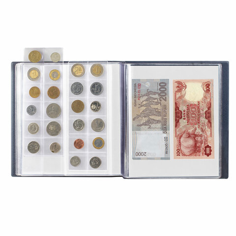 Альбом предназначен для монет и купюр. Обеспечивает сохранность, наглядность, упрощает поиск, позволяет систематизировать коллекцию.