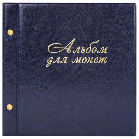 Альбом для монет и купюр на винтах универсальный, 224х224 мм, на 216 монет до D-45 мм, выдвижные карманы, синий, "ДПС", 2855-201
