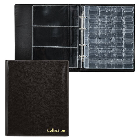 Альбом нумизмата для 297 монет и 6 бон (купюр) "OPTIMA", 230х270 мм, ПВХ, коричневый, STAFF, 238077