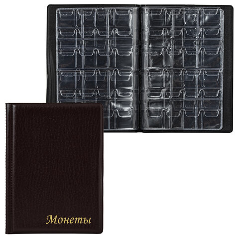 Альбом нумизмата для 96 монет, 125х175 мм, комбинированный, ПВХ, бордовый, STAFF, 238073