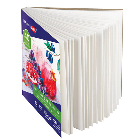 Альбом для акварели, бумага ГОЗНАК СПб 200 г/м2, 150x150 мм, 40 л., склейка, BRAUBERG ART, 106144