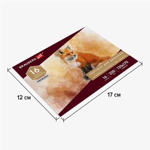 Альбом для акварели, бумага ИТАЛИЯ 200 г/м2 25% хлопок 120х170 мм, 16 л., BRAUBERG ART PREMIERE, 105910
