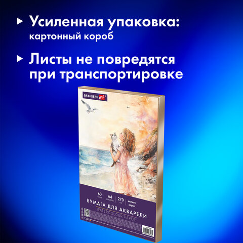 Бумага для акварели А4 60 л., 270 г/м2, мелкое зерно, в коробке, BRAUBERG ART CLASSIC, "Вдохновение", 116887
