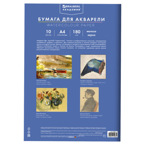 Папка для акварели BRAUBERG АКАДЕМИЯ предназначена для рисования всеми видами водорастворимых красок, а также подойдет для рисования карандашами, ручками и фломастерами. Бумага подходит для непрофессионального и детского рисования.