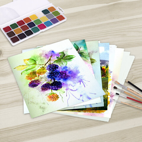 Бумага для акварели BRAUBERG ART "CLASSIC" содержит набор листов, специально предназначенных для рисования всеми видами водорастворимых красок.