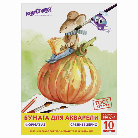 Папка для акварели БОЛЬШАЯ А3, 10 л., 180 г/м2, ЮНЛАНДИЯ, 297х420 мм, "Мышонок", 111066