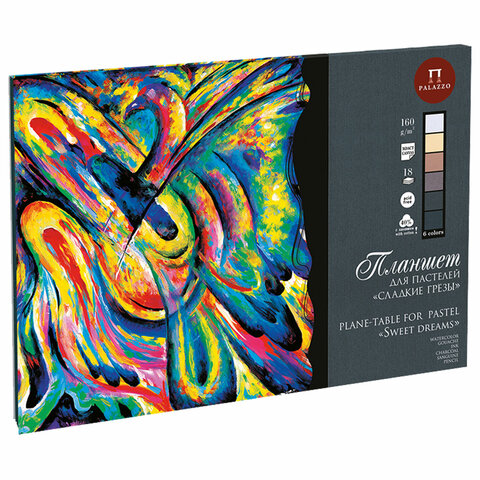 Папка для пастели / планшет БОЛЬШАЯ А2, 18 л., 6 цв.,160 г/м2, тонированная бумага, подложка, "Сладкие грёзы", ППГ/А2