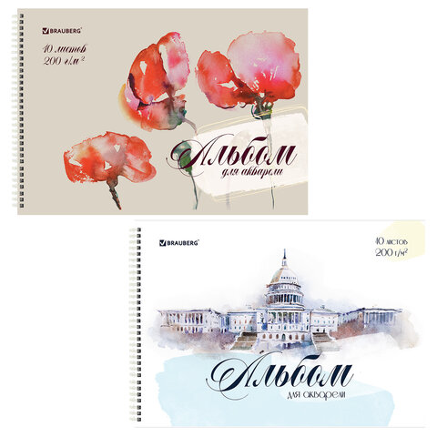 Альбом для акварели А4 40 л., бумага 200 г/м2, гребень, обложка картон, BRAUBERG, Ассорти 2 вида, 106713