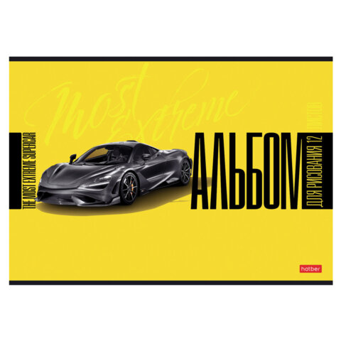 Альбом для рисования А4 12 л., скоба, обложка картон, HATBER, 205х290 мм, "Спортивные авто", 079709, 12А4В