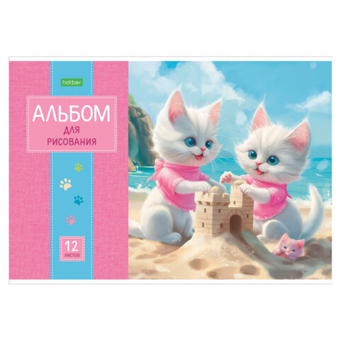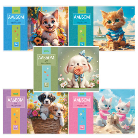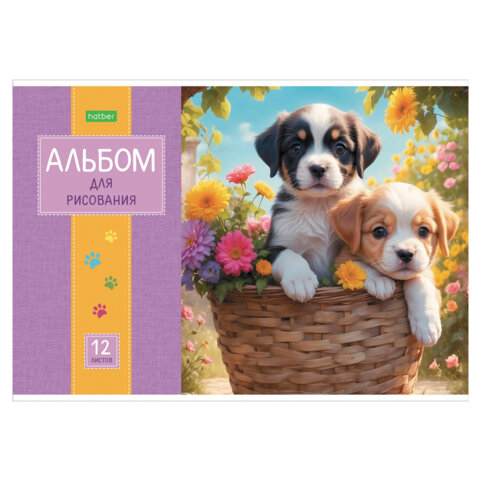 Альбом для рисования А4 12 л., скоба, обложка офсет, HATBER ECO, 205х290 мм, "Пушистые мордочки" (5 видов), 091561, 12А4C