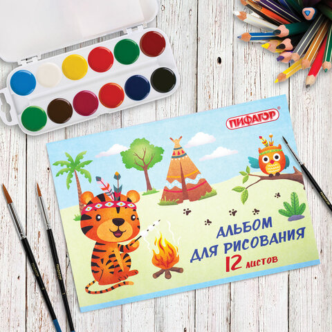 Альбом для рисования А4 12 л., скоба, обложка офсет, ПИФАГОР, 203х288 мм, "Пикник" (2 вида), 106688