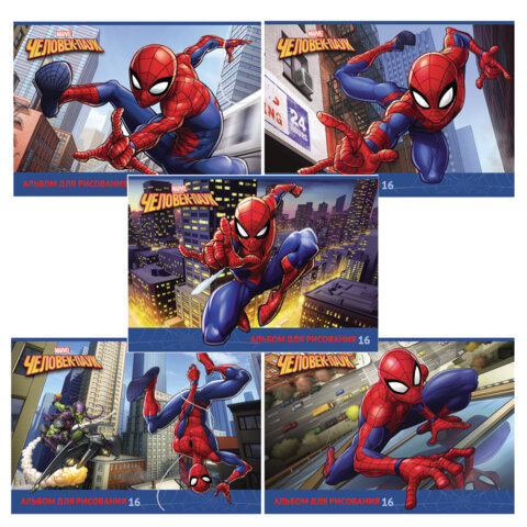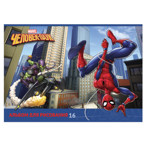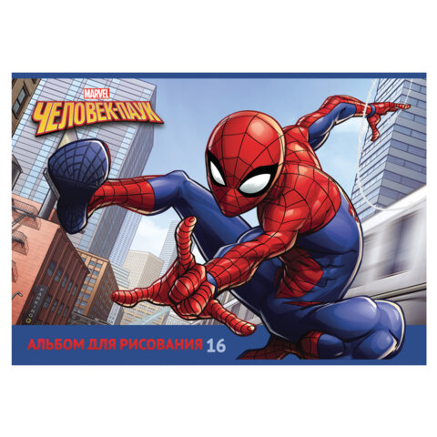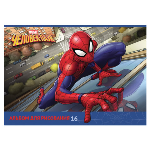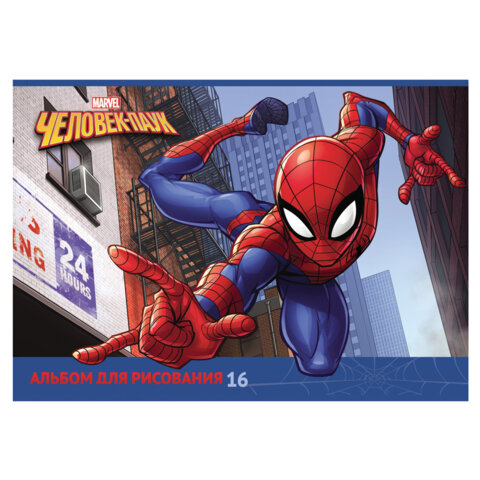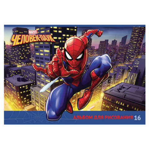Альбом для рисования А4 16 л., скоба, обложка картон, HATBER, 205х290 мм, "Человек-паук" (MARVEL), 085110, 16А4В