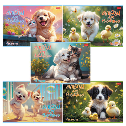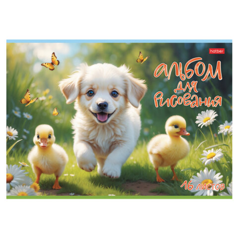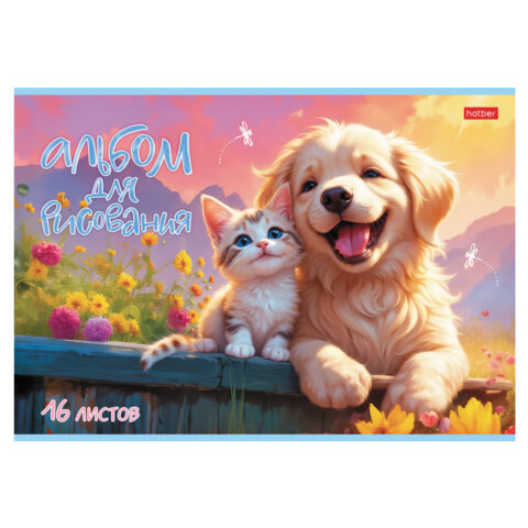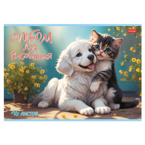 Альбом для рисования А4 16 л., скоба, обложка картон, HATBER, 205х290 мм, "Верные друзья" (5 видов), 091491, 16А4В
