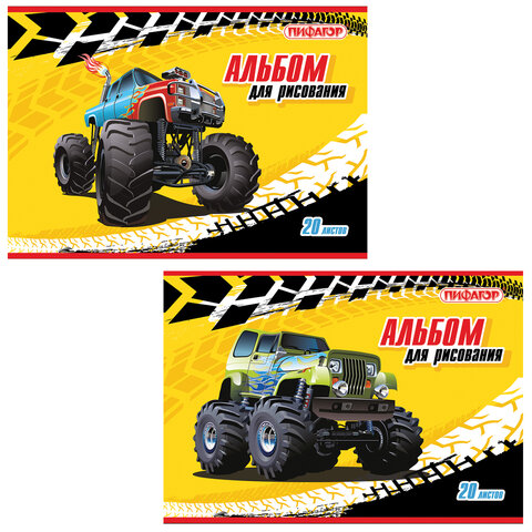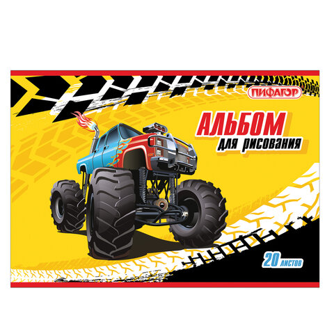 Альбом для рисования, А4, 20 л., скоба, обложка офсет, ПИФАГОР, 200х285 мм, "Машинки" (2 вида), 104868