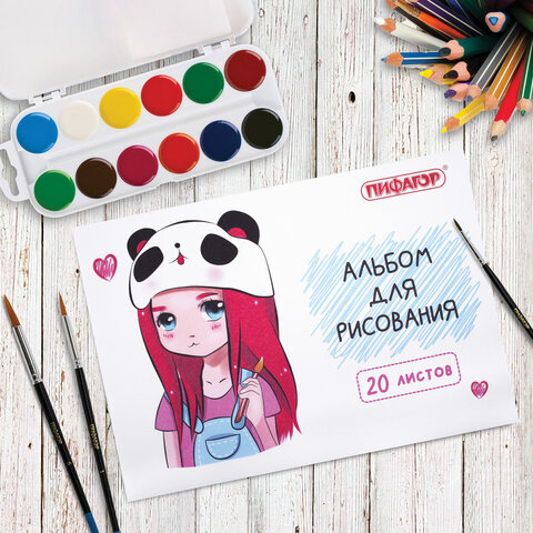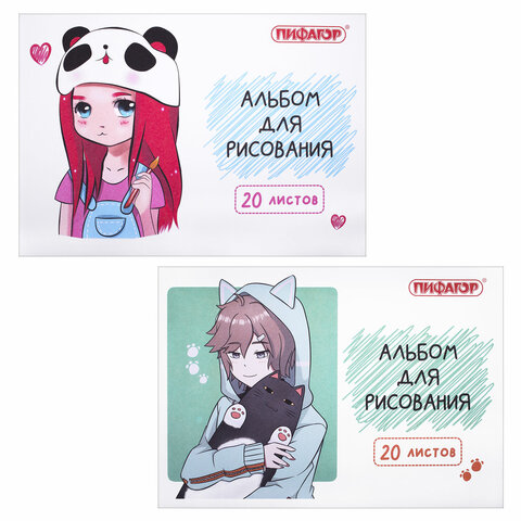 Альбом для рисования А4 20 л., скоба, обложка офсет, ПИФАГОР, 203х288 мм, "Детки" (2 вида), 106690