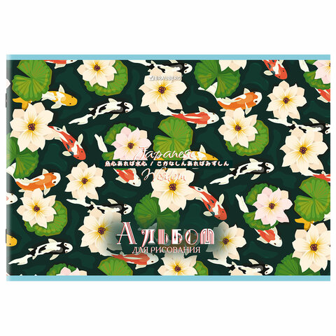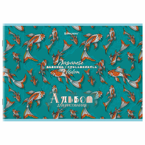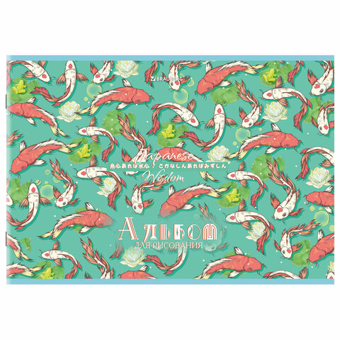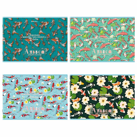 Альбом для рисования А4, 24 листа, скоба, обложка картон, BRAUBERG, 203х288 мм, "КАРПЫ КОИ" (4 вида), 107107