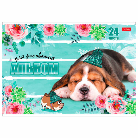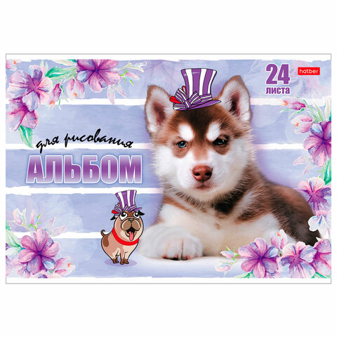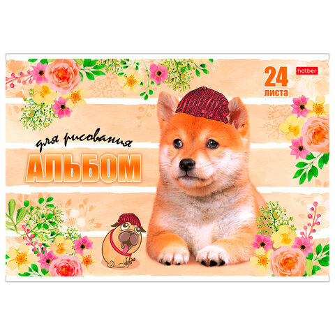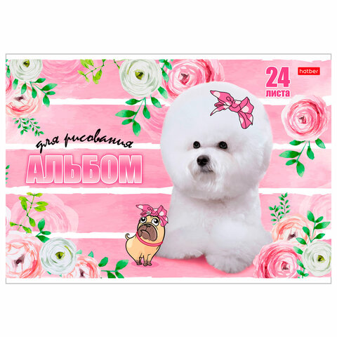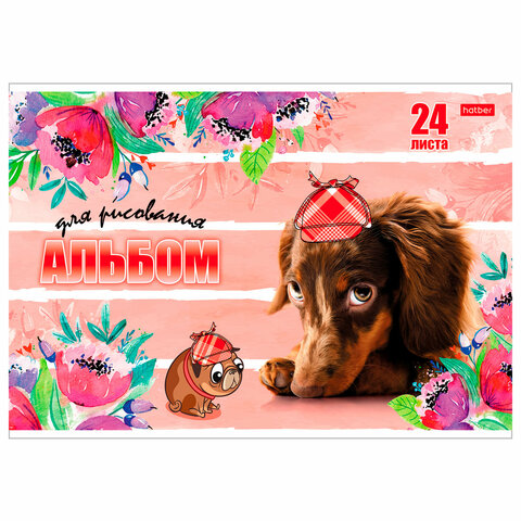 Альбом для рисования, А4, 24 листа, скоба, обложка картон, HATBER, 205х290 мм, "Любимцы", 004051, 24А4В