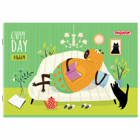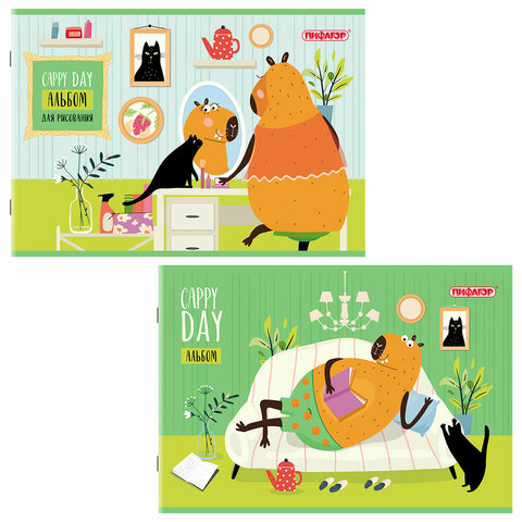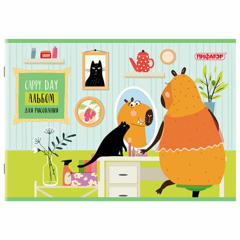 Альбом для рисования А4, 24 листа, скоба, обложка офсет, ПИФАГОР, 203х288 мм, "КАПИБАРА" (2 вида), 107104