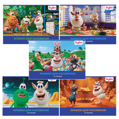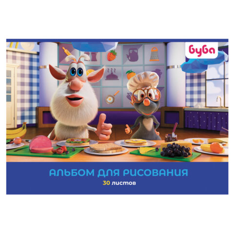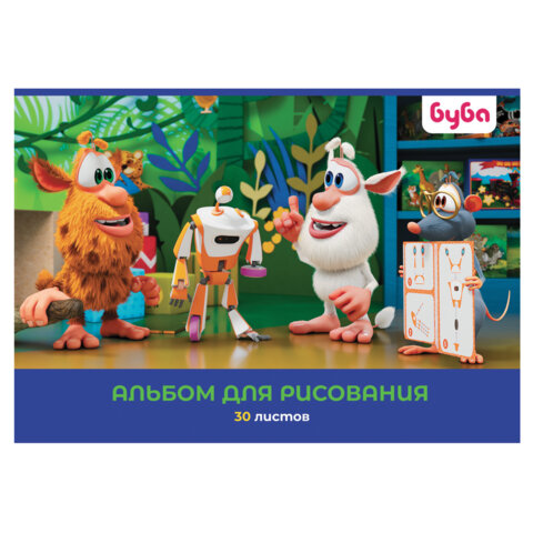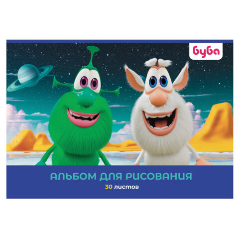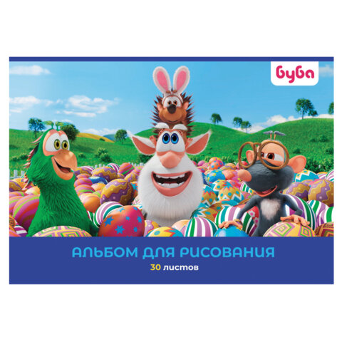 Альбом для рисования А4 30 л., скоба, обложка картон, HATBER, 205х290 мм, "Буба", 082442, 30А4В