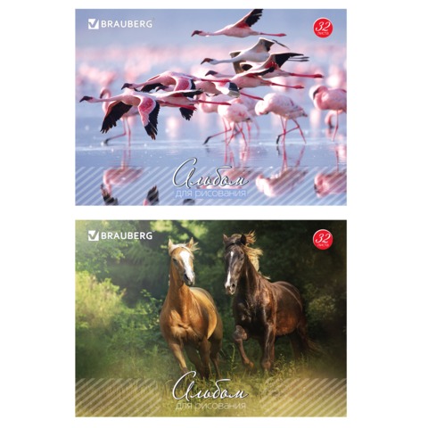 Альбом для рисования, А4, 32 листа, скоба, обложка картон, BRAUBERG, 200х283 мм, "Живая природа" (2 вида), 103683