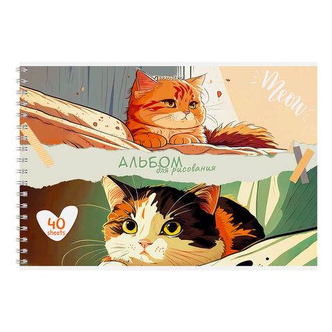 Альбом для рисования А4, 40 л., гребень, обложка картон, BRAUBERG, 195х285 мм, МИКС-1, 107118