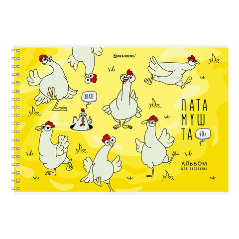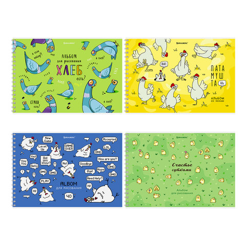 Альбом для рисования А4, 40 л., гребень, обложка картон, BRAUBERG, 195х285 мм, "Пернатые", 107120