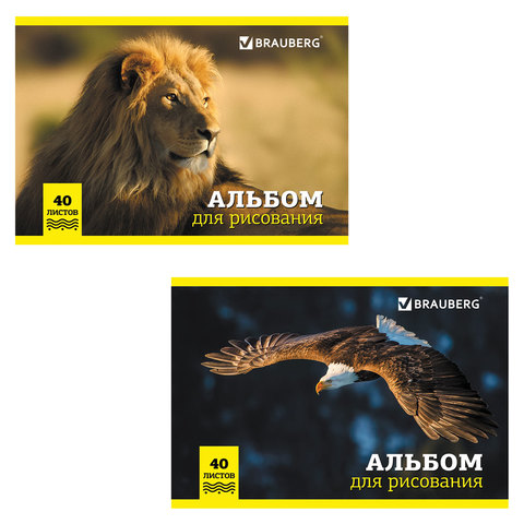 Альбом для рисования, А4, 40 л., скоба, обложка картон, BRAUBERG, 200х283 мм, "Дикие животные" (2 вида), 104876