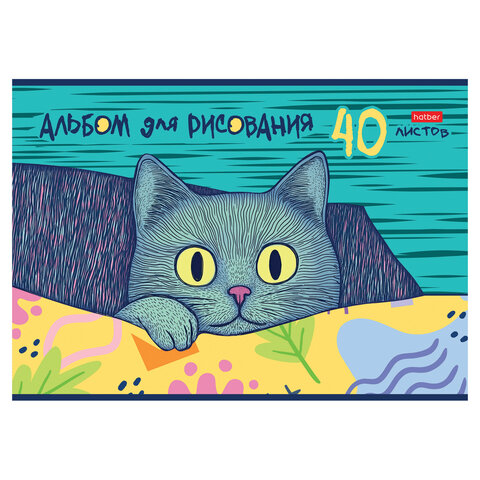 Альбом для рисования А4, 40 л., скоба, обложка картон, HATBER, 205х290 мм, "Котофей" (5 видов), 091512, 40А4В