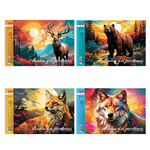 Альбом для рисования А4 40 л., спираль, обложка картон + тиснение, HATBER, 198х300 мм, "Дикий мир России" (4 вида), 085173, 40А4тВсп