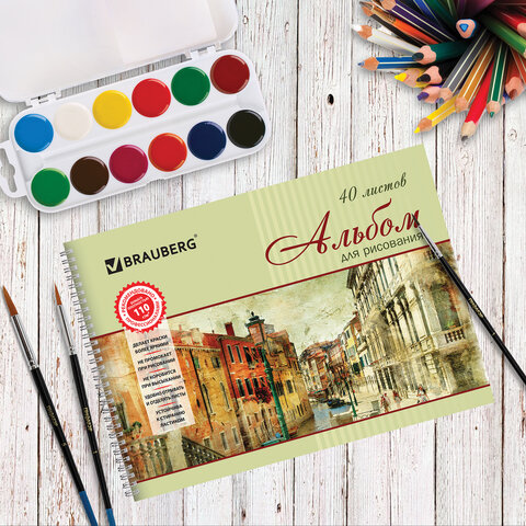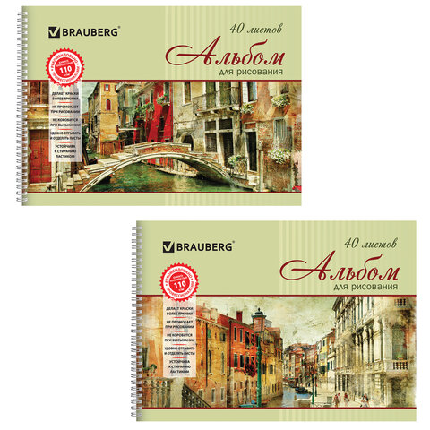 Альбом для рисования, А4, 40 листов, гребень, обложка картон, BRAUBERG, 195х285 мм, "Город мечты" (2 вида), 103731