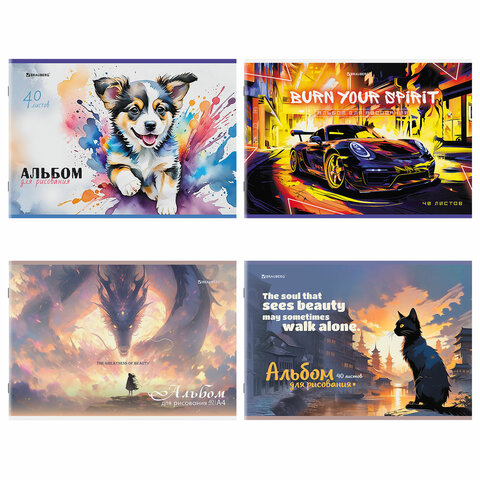 Альбом для рисования А4, 40 листов, скоба, обложка картон, BRAUBERG, 203х288 мм, "МИКС-1", 107114